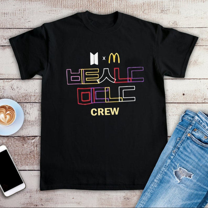 A basic item that goes with any look. Bts x mcdonald’s crew t shirt. Mcdonald’s x bts crew shirt.the words on the shirt are “ㅂㅌㅅㄴㄷ,” meaning “방탄소년단” (bts) and “ㅁㄷㄴㄷ” means “맥도날드” (mcdonald’s).